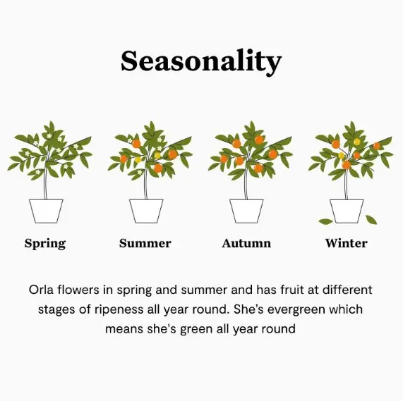Say hello to the sweet orange tree, your bright citrus friend! She adores sunshine and delights in fragrant blooms and juicy fruit. A patio favorite, Orla adds a burst of Mediterranean charm to your garden, balcony, or sun-drenched space.