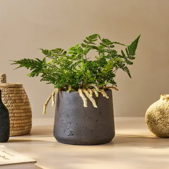 Say hello to White Rabbit’s Foot Fern, the soft-footed sweetheart of the plant universe. Fuzzy rhizomes flowing over the edge of the pot and delicate green fronds stretching upwards, Jax brings a little woodland enchantment inside. He’s an easy-going fern who adores dampness, shade, and a little pampering.